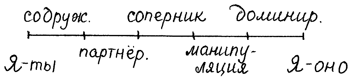 Общение как взаимодействие (интеракция). Интерактивная сторона общ. - характеристика компонентов общения кот. связ. с непоср. организацией их совместной деят. , взаимодействием людей. В ходе этой совм. деят. важно (кроме обмена инфо. ) организовать обмен действиями, спланировать общую деятельность. Сущ. несколько теор. описывающих структуру взаимодейств. Одна из них - Щепаньского и связ. с описанием ступеней развития этого взаимод. Центральное понятие при описание соц. поведения у него - соц. связи. Она мож. б. представлена как последовательное развитие: пространств. контакта псих. контактасоц. контактавзаимодействие соц. отношения (взаимосопряж. системы). + транзактный анализ - регулирование отношений уч-ков взаимодейств. через регулирование их позиций, а также учета хар-ра сит. и стиля взаимодейств. Кажд. уч-ник мож. занимать 1 из 3 позиц: Родитель (Надо), Взрослый (Нало и Хочу), Ребенок (Хочу). Транзакции эффективны если позиции нос. дополн. характер (Взр-Взр) - дополнительные vs. пересек. транзакции. II Кажд ситуация носит свой стиль поведения и действий3 ур. стиля действий: ритуальный, манипулятивный и гуманист. Типы взаимод: