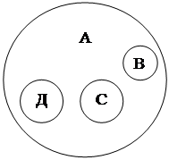 Таким образом, объемы двух понятий А и В произвольным образом включаются в объем третьего, более широкого понятия С. б) Такие понятия, как: «иностранец» (А); «гражданин России» (В); «японец» (С); «англичанин» (Д) можно изобразить следующим образом: