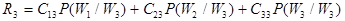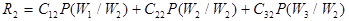 Средний риск для случая двух оставшихся классов W3 и W4 обозначим индексом "2" и также, как для первого случая, после простых преобразований получим