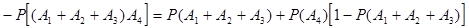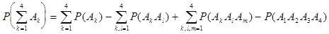 Теперь образуем разность между вероятностями суммы 4-х и 3-х событий, состоящих в рассматриваемом нами случае в принятии однозначного решения о принадлежности по 4-м и 3-м признакам распознавания соответственно: