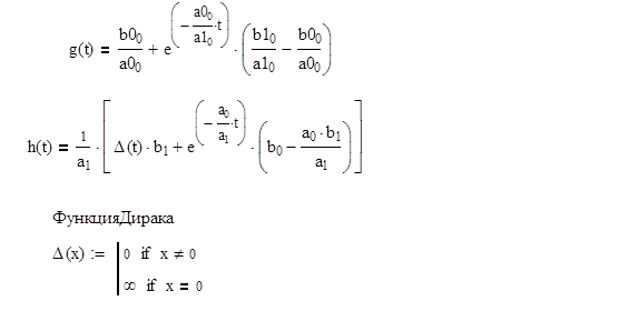 где g(t)- переходная характеристика, p-оператор Лапласа, H(p)- операторная характеристика. Для импульсной характеристики:
