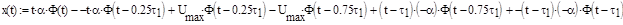 Временные характеристики исследуемой цепи изображены на рис.6, рис. 7. Частотные характеристики изображены на рис. 4, рис. 5. 7. ОПРЕДЕЛЕНИЕ РЕАКЦИИ ЦЕПИ НА ИМПУЛЬС С помощью интеграла Дюамеля можно определить реакцию цепи на заданное воздействие и в том случае, когда внешнее воздействие на цепь описывается кусочно-непрерывной функцией, которая имеет конечное число конечных разрывов. В этом случае интервал интегрирования необходимо разбить на несколько промежутков в соответствии с интервалами непрерывности функции и учесть реакцию цепи на конечные скачки функции в точках разрыва. Для определения реакции цепи на воздействие импульса изображённого на рис.2 очевидно, что интервал интегрирования необходимо разбить на четыре части ( tÎ(0,t1 ), tÎ(t1 ,t2 ), tÎ(t2 ,t3 ), t>t3 ). Запишем реакцию на входной импульс: