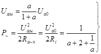 Это показывает, что наибольшая мощность, которую триоды могут отдать при работе в режиме В без токов сетки: 1)прямо пропорциональна квадрату анодного напряжения Uа0 ; 2)обратно пропорциональна внутреннему сопротивлению триодов Ri ; 3)зависит от отношения сопротивления нагрузки к внутреннему сопротивлению лампы. Отсюда следует, что для получения наибольшей мощности в режиме В при заданном напряжении на аноде необходим триод с малым внутренним сопротивлением, как и в режиме А. Продифференцировав знаменатель правой части выражения (14) по а и приняв производную нулю, нетрудно убедится, что максимум отдаваемой мощности имеет место при а=1 . Следовательно, при заданном анодном напряжении и работе без токов сетки триод в режиме В отдает наибольшую мощность при сопротивлении анодной нагрузки, равном его внутреннему сопротивлению. Для определения зависимости кпд каскада мощного усиления с триодами в режиме В от сопротивления нагрузки используем выражение (4), которое после замены U0 через Uам + Uост и деления числителя и знаменателя полученного выражения на Uост примет вид