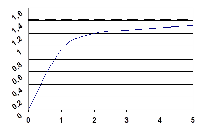 рис.3 Зависимость пропускной способности двоичного симметричного канала без памяти от вероятности ошибочного приёма символа. При р=1/2 пропускная способность канала С=0, поскольку при такой вероятности ошибки последовательность выходных символов можно получить совсем не передавая сигнала по каналу, а выбирая их наугад, т.е. при р=1/2 последовательности на выходе и входе канала независимы. Случай С=0 называют обрывом канала . Пропускная способность непрерывного канала связи. Вычисляется аналогично пропускной способности дискретного канала. Непрерывный сигнал дискретизируется во времени с помощью отсчетов согласно теореме Котельникова и информация, проходящая по каналу за время Т , равна сумме количества информации, переданной за один отсчет. Поэтому общая ПС канала равна сумме ПС на один такой отсчет: , (7) где U - переданный сигнал; Z - сигнал на выходе канала с наложенными на него шумами; N - шум; Z =U +N . Пусть U и N - случайные величины с плотностью распределения вероятности w , распределенной по нормальному (гауссовскому) закону. Для таких сигнала и шума (см. вывод в [1, с. 114, 117-118]: . Отсюда следует: . ПС в расчете на секунду будет равна: , (8) поскольку при дискретизации сигнала по теореме Котельникова за одну секунду мы получим 2F отсчетов, где F - верхняя частота спектра сигнала. Подчеркнем, что формула (8) имеет такой вид только при условии, что плотности распределения вероятностей w (U ) и w (N ) подчиняются нормальному закону. Формула (8) имеет важное значение, т.к. указывает на зависимость ПС канала от его технических характеристик - ширины полосы пропускания и отношения мощности сигнала к мощности шума. Чтобы выяснить как зависит пропускная способность от ширины полосы пропускания выразим мощность шума в канале через его одностороннюю спектральную мощность N 0 . Имеем Рш =N0 F; поэтому С=F*log(1+ Pc/N0 *F )=F*loge*ln(1+Pc/N0 *F) (9) При увеличении F пропускная способность С, бит/с, сначала быстро возрастает, а затем асимптотически стремится к пределу: C∞ =Lim(Pc/N0 )*loge (10) Результат (10) получается очень просто, если учесть, что при |e|<<1 ln(1+e)»e. Зависимость С и F показана на рис.4.