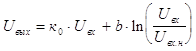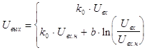 где К0 – коэффициент усиления в линейном режиме; Uâõ.í – ïîðîãîâûé óðîâåíü âõîäíîãî ñèãíàëà, íà÷èíàÿ ñ êîòîðîãî àìïëèòóäíàÿ õàðàêòåðèñòèêà ñòàíîâèòñÿ ëîãàðèôìè÷åñêîé; b – коэффициент, определяющий наклон ЛАХ. Основные показатели логарифмического усилителя могут быть определены из соотношений [11]: