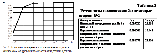 где TBm - время выполнения m-го операционного блока, который лежит на данном маршруте. В свою очередь вероятность РУВ и среднее время ТУВ выполнение задачи комплексом определяются так: