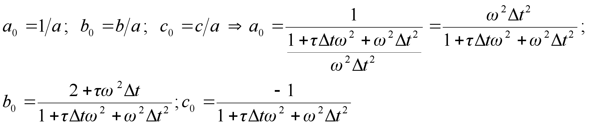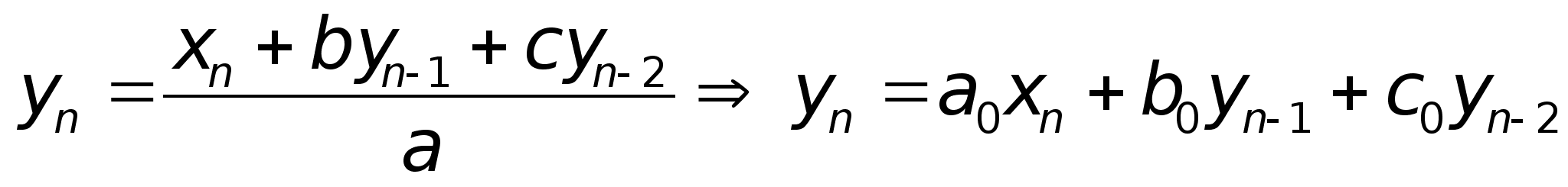 В результаті часової дискретизації заданого рівняння отримаємо рівняння цифрового фільтра. Це рівняння в загальній формі при обробці інформації в реальному масштабі часу має вигляд: