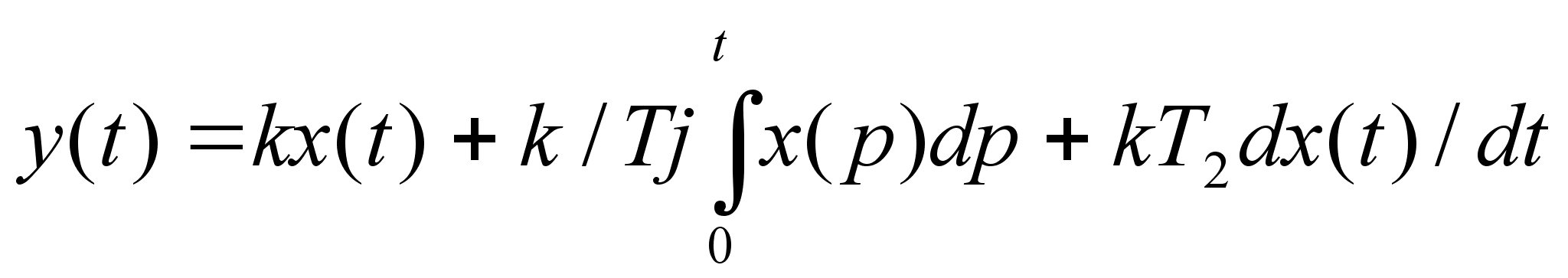 Т1 і Т2 - сталі часу; у (t) - керуючий сигнал, який подається з системи регулювання на об'єкт керування. Дискретизація аналогового рівняння полягає в заміні безперервної величний її дискретними відліками (x(t)хn, у(t)yn) і відповідними перетвореннями похідних та інтегралів. Очевидна дискретизація першої похідної - її заміна першою скінченною різницею:
