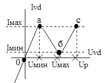 С увеличением приложенного напряжения скорость электрона увеличивается, растет число соударений его с атомами в узлах решетки (ударная ионизация), что приводит к появлению новых носителей заряда. Увеличение числа зарядов приводит к увеличению тока неосновных носителей, температура перехода увеличивается, а это, в свою очередь, приводит к нарушению ковалентных связей и росту носителей. Процесс может принять лавинообразный характер и привести к пробою p-n-перехода (рис. 1.1). Различают следующие виды пробоев: туннельный (при напряженности поля перехода свыше 106 В/см, до точки «а»); электрический (вызван ударной ионизацией, после точки «а»), этот тип пробоя иногда называют лавинным, при этом в переходе идут обратимые процессы и после снятия обратного напряжения он восстанавливает свои рабочие свойства. При электрическом пробое нарастание тока почти не вызывает изменения напряжения, что позволило использовать эту особенность характеристики для стабилизации напряжения;