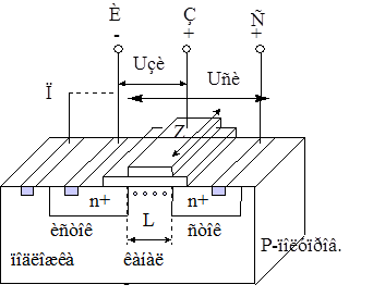 Рис. 3.6. Структура МОП-транзистора с индуцированным n- каналом
