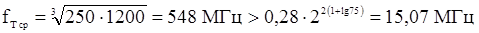 Здесь SF – результирующая относительная нестабильность коэффициента усиления, выраженная в дБ и соответствующая его изменениям от минимального до максимального значений; FMS – местной ОС, а если ее нет, то FMS = 1. Проверим условие (2.22): F = 50 > 0,75·20·2(lg(70/20) + lg(150/25))/0,5 = 39,67. Приведем в виде таблицы параметры выбранного транзистора: Таблица П.2.2.