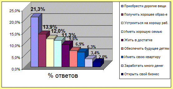 Ведь данное утверждение в нормальном демократическом обществе может существовать только в теории, так как у каждого человека разная материальная база в начале жизни, так как благосостояние родителей у всех разное, количество и надежность друзей и родственников тоже разное, интеллектуальный и профессиональный уровень разный и т.д. Поэтому данный ответ на вопрос является завуалированным отрицанием возможности имущественного неравенства. Далее будут рассмотрены некоторые данные исследований молодежи относительно изменения культурных ценностей в последние года: «… По данным Российского независимого института социальных и национальных проблем (РНИЧиНБ) , изменения в системе культурных потребностей молодежи в период с 1987 по 1997 года происходили следующим образом: