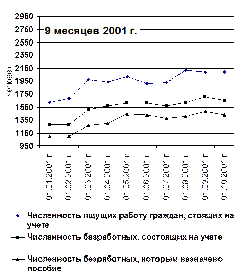 Из таблицы видно, что намеченные к высвобождению работники, в основном женщины и молодежь. В скором будущем они пополнят ряды безработных. И тогда безработных женщин и молодежи станет еще больше. Обратимся к таблице 2 Численность безработных за 9 месяцев 2202 г. по г. Томску