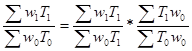 Здесь в исходной информации веса (площадь под культурами) не заданы, но входят сомножителем в валовой сбор, равный урожайности, умноженной на площадь Mi