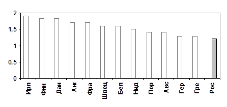 Приложение 2. Суммарный коэффициент рождаемости в странах Европы (1996 г.)