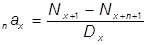 Теперь рассчитаем годичные ставки. Единовременная нетто-ставка, как было показано ранее, равна современной стоимости финансовых обязательств страховщика и страхователя. При единовременной оплате страхователь все свои финансовые обязательства выполняет в момент заключения договора. При годичных взносах он рассчитывается со страхователем постепенно. Очевидно, что общая сумма годичных взносов должна быть эквивалентна единовременному взносу. Однако она не равна ему в связи с двумя обстоятельствами. Во-первых, в течении срока страхования будет нарастать доход в виде процентов (i ), во-вторых, часть страхователей не сможет полностью расплатиться вследствии смертности. Иначе говоря, единовременная нетто-ставка является современной стоимостью суммы годичных взносов, поскольку это рассроченные финансовые обязательства страхователя. Мы установили, что современная стоимость годичного взноса в 10 000 руб представляет собой коэффициент рассрочки. Отсюда можно составить следующую пропорцию. Искомый годичный взнос так относится к 10 000 руб, как современная стоимость всех годичных взносов в размере 10 000 руб (коэффициенту рассрочки), или n Px : 1=n Edx : n ax где п Рх - годичный взнос п Едх - единовременный взнос п ах - коэффициент рассрочки Следовательно, n