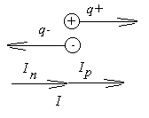 (в равновесии уровни Ферми в разных частях сложной системы совпадают). Ну а на самом деле, между левой и правой частью полупроводника появляется электрическое поле, направленное от плюса к минусу, т.е. так, как указано на рис. Это электрическое поле вызывает возникновение дрейфового тока, направленного так, что электроны текут справа налево, а дырки – наоборот. Чем больше электрическое поле, тем больше этот ток. В конце концов он уравновесит диффузионный ток, так как он по направлению ему противоположен. Установится равновесие (одновременно существуют два диффузионных тока – электронов и дырок – и два дрейфовых тока, которые все между собой равны). Теперь рассмотрим количество носителей заряда (электронов и дырок). Слева и справа, где зонная диаграмма горизонтальна, они велики, так как уровни Ферми близки к соответствующим границам зон. А там, где эти границы искривляются, уровень Ферми удаляется от одной границы и приближается к другой. Из рис. видно, что в области п-типа электронов становится гораздо меньше, чем было в левой части. А в области р-типа дырок значительно меньше, чем было в правой части. Но левая часть нейтральна, так как в ней есть ещё и заряды ионов – атомов доноров. Эти атомы жёстко закреплены в узлах кристаллической решётки, и не могут двигаться, т.е. не переносят ток. Но их количество строго равно количеству электронов, поэтому в этой области нет зарядов (сама диаграмма говорит об этом: если линии энергетических уровней горизонтальны, то нет электрического поля, значит нет зарядов, или их сумма с учётом знака равна нулю). То же самое можно сказать и о правой части полупроводника: количество дырок и акцепторов в ней одинаково, хоть и велико, но полный заряд равен нулю. Совсем другое можно сказать о средней области полупроводника, где зоны искривлены. Количество неподвижных зарядов, доноров и акцепторов, неизменно и велико. А электронов и дырок из-за увеличения расстояния между границами зоны и уровнем Ферми во много раз уменьшается. Поэтому в этой области есть заряды, и практически они равны зарядам неподвижных доноров и акцепторов: