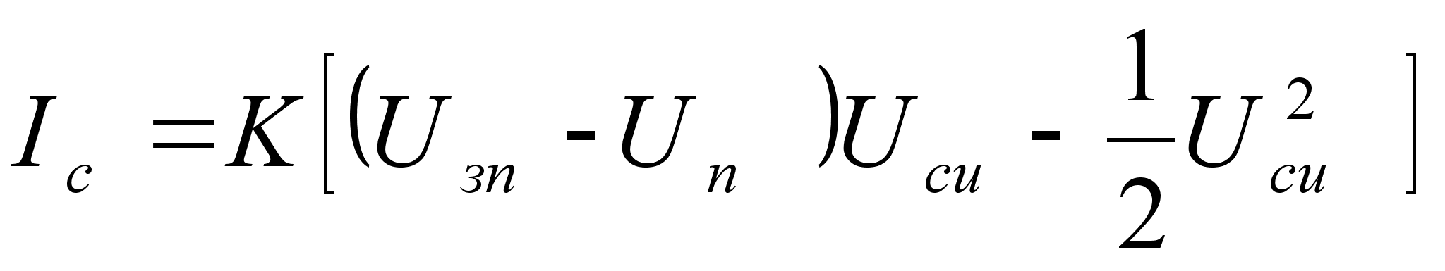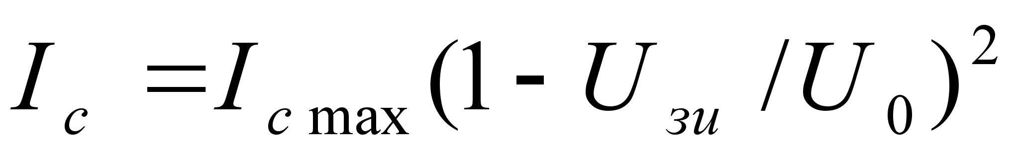 где К – коэффициент, зависящий от конструкции и технологии изготовления транзистора, имеет размерность А/В2 . Это парабола в координатах Uси – Ic , причём перевёрнутая и проходящая через начало координат. Максимум лежит в точке