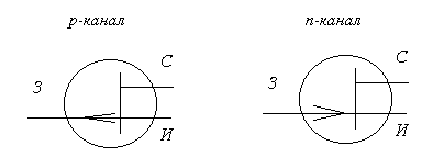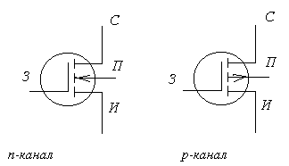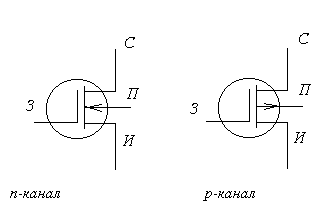 Крутизна измеряется в мA/В, и составляет обычно от 1 до 100. Входное сопротивление – 109...1012 Ом. На схемах полевые транзисторы изображаются так: Н Обычно