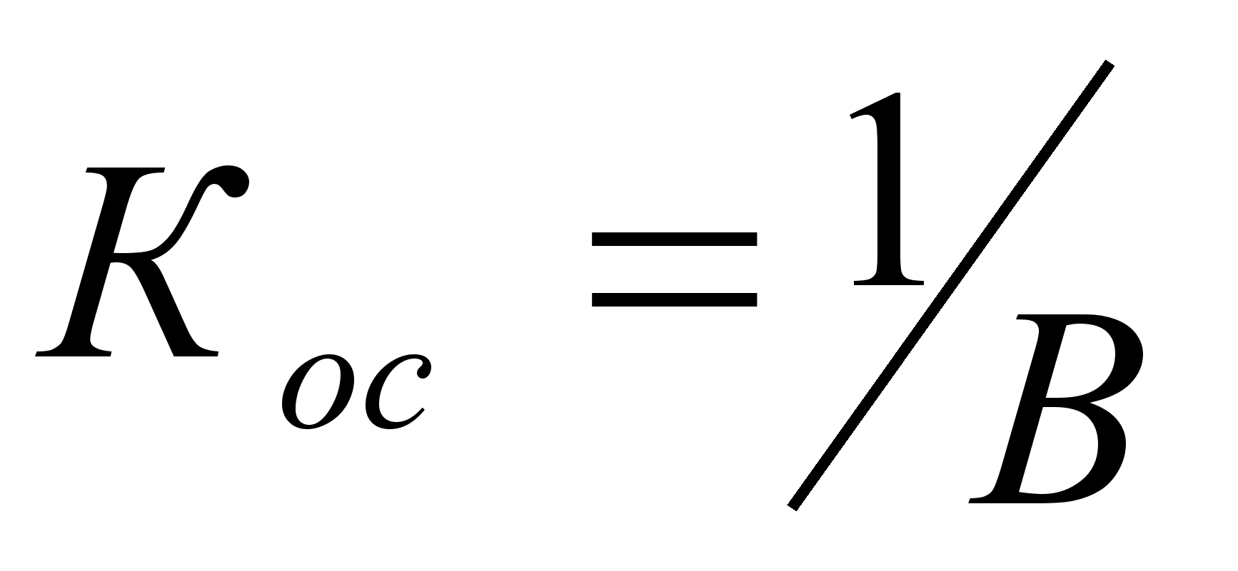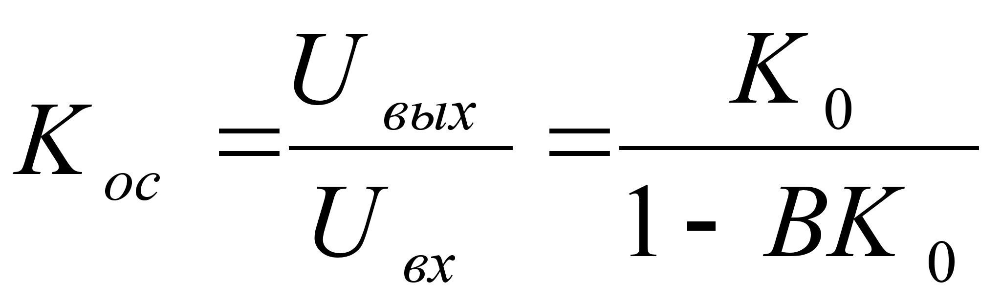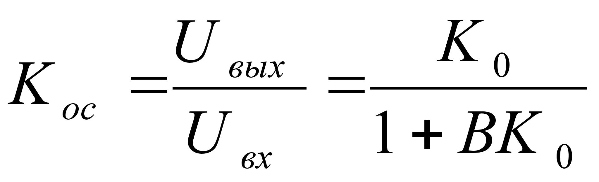 Таким образом, видно, что при наличии ООС Кос всегда меньше или равен К0 (последнее будет, когда В=0, т.е. обратной связи нет). Итак, вредность ООС очевидна – она уменьшает коэффициент усиления. Посмотрим всё же внимательнее на знаменатель. Там произведение ВК0 может быть любой величиной, в том числе и большой (значительно больше 1). Но тогда единицей можно в знаменателе пренебречь. И К0 сократится, останется: