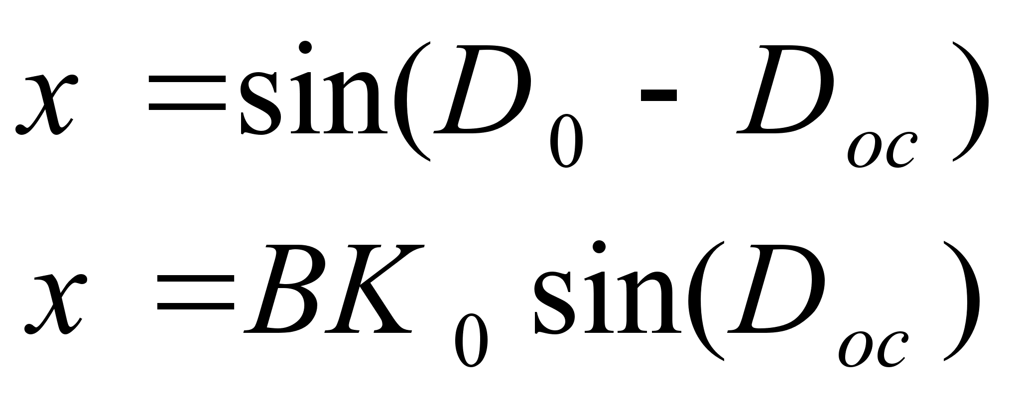 Д исключая отсюда х и пренебрегая синусом (считаем, что углы малые), получим