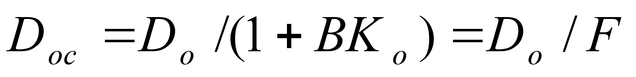 Величину F=1+BК0 называют глубиной обратной связи. Это именно та величина, в которую уменьшается коэффициент усиления при ООС. Чтобы уменьшить влияние этого фактора, умножим полученную формулу на F: