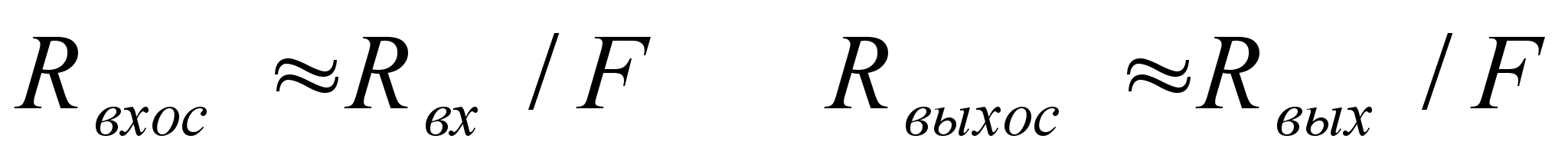 В этом случае и входное, и выходное сопротивления уменьшаются примерно в F раз: