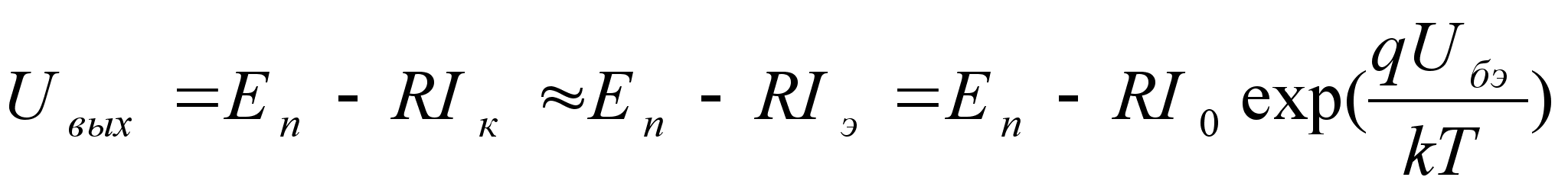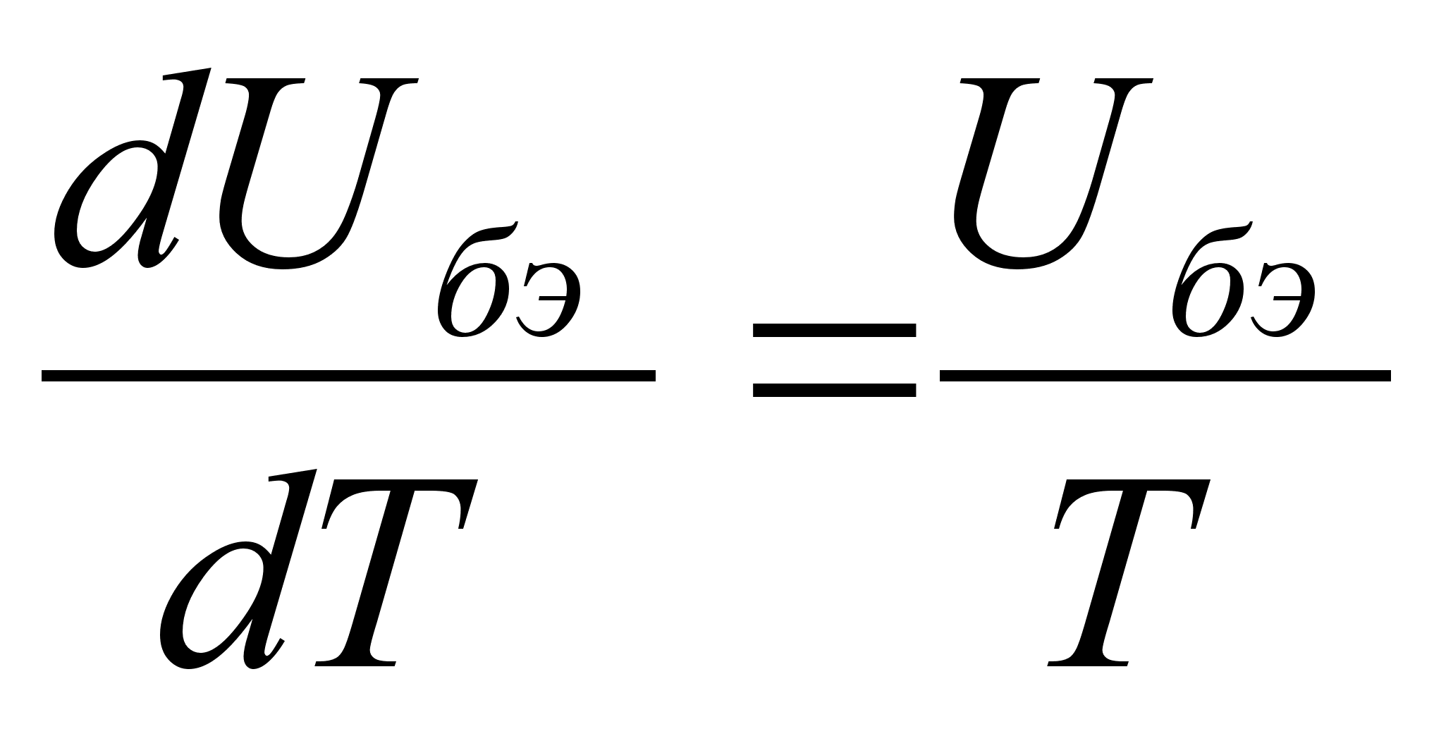 Мы написали это выражение в таком виде, чтобы точно увидеть, как оно зависит от температуры. Но при этом мы будем считать, что при изменении температуры одновременно изменяется и входной сигнал, так, чтобы на выходе всё оставалось постоянным. Итак, мы считаем, что Uвых, Еп, R и I0 остаются постоянными (последнее, правда, немного меняется, но гораздо меньше, чем члены в экспоненте). Поэтому можно полагать, что меняются только Uбэ и Т – напряжение база-эмиттер и абсолютная температура. (q и k – мировые константы – заряд одного электрона и постоянная Больцмана.) Продифференцируем по Т и приравняем нулю.