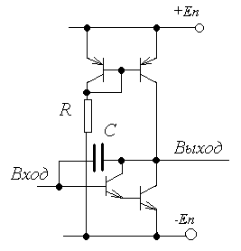 где Roc – сопротивление, с которого снимается сигнал, пропорцинальный выходному току. Так что в этом случае мы видим, что и входное, и выходное сопротивление велики, примерно в F раз больше, чем у обычного усилителя.