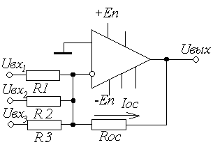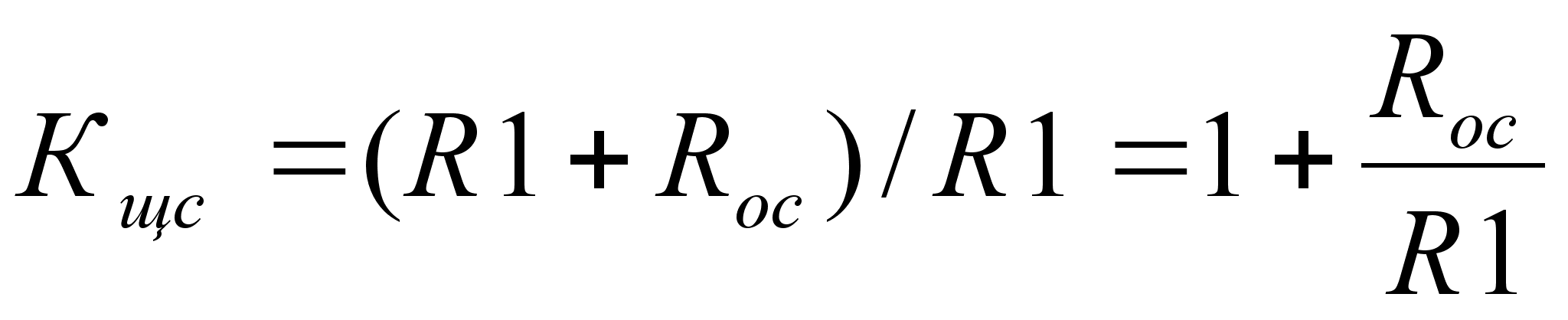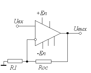 Так как ОУ обладает большим Кос, можно считать, что глубина обратной связи большая, и коэффициент усиления этой схемы равен