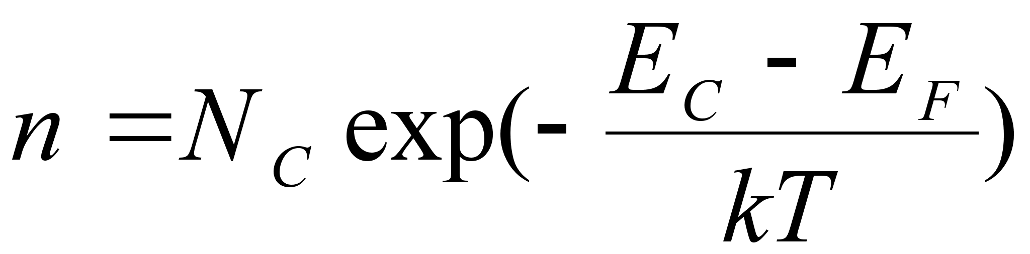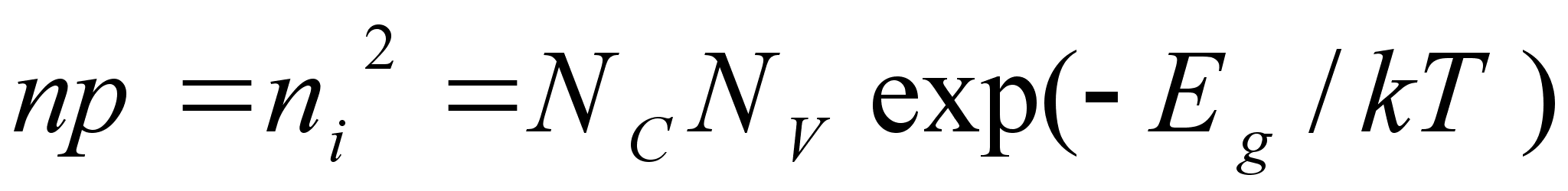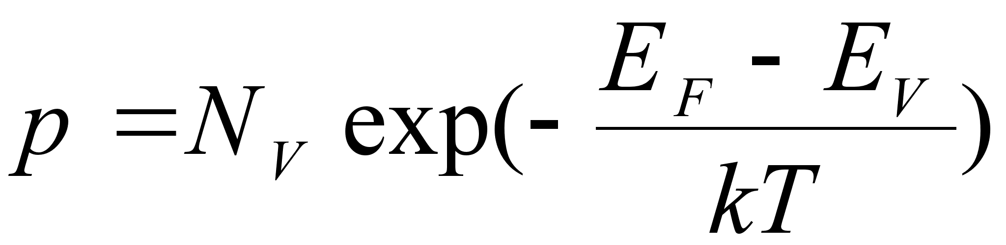 где NV - эффективная плотность состояний в валентой зоне. Мы знаем, что концентрации электроной и дырок одинаковы, т.е. n=p=ni , кроме того,