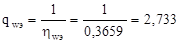 Расход тепла в турбинной установке на выработку электроэнергии, без учета затрат тепла на подогрев химически очищенной воды подаваемой в цикл паротурбинной установки для восполнения потерь, кДж / ч: Qw э = Qэ - Dдв (сtпв - сtприр ) = 794588,6 * 103 - 7,35 ( 1078,8 - 62,94 ) * 103 = = 794588,6 * 103 - 7466,57* 103 = 787122,03, где сtприр –энтальпия охлаждающей воды, поступающей в конденсатор из внешнего источника водоснабжения, температура воды в котором принимается 15 °С (для всех вариантов ), и тогда сtприр =62,94 кДж / кг; Dдв - количество химически очищенной воды подаваемой в цикл паротурбинной установки для восполнения потерь: Dдв = 0,02D = 0,02*367,253 = 7,35 т/ч Удельный расход тепла на выработку электроэнергии ( без учета расхода на собственные нужды ), кДж / (кВт * ч), qw э = Q wэ / N э = 787122,03 * 103 / 80 * 103 = 9839,02. Коэффициент полезного действия турбоустановки по выработке электроэнергии: