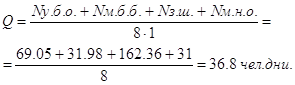 Трудоемкость с учетом процента перевыполнения (кол. 7) определяется путем умножения продолжительности выполнения укрупненного монтажного процесса и количественного состава бригады. Данная трудоемкость должна быть меньше трудоемкости, рассчитанной в пункте 7 (кол. 5). Процент перевыполнения (кол. 6) рассчитывается по формуле: