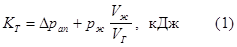где Кт - удельная энергия соприкосновения, затрачиваемая на очистку в мокром пылеуловителе 1000м^3 газов, кДж; Δpап - гидравлическое сопротивление аппарата, Н/мІ; рж - давление распыливаемой жидкости, Н/мІ; Vж, Vг - расход соответственно жидкости и газа, мі/с. Первое слагаемое в выражении (1) характеризует степень турбулизации газо-жидкостного потока в аппарате, второе – качество диспергирования жидкости. Их влияние на величину зависит от типа аппаратов. Например, в скруббере Вентури оснсвное влияние оказывает гидравлическое сопротивление аппарата. Зависимость между степенью очистки газа и затратами энергии выражают формулой