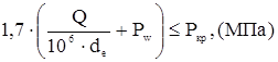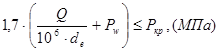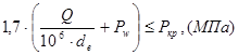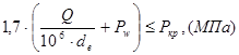 где: krp - принимается по таблице 8; - от собственного веса газопровода: Q2 = l,l . qq , (н/м); - от выталкивающей силы воды на обводненных участках трассы: О3 = l,2 . qwi , (н/м); - от равномерно распределенной нагрузки на поверхности засыпки: Q4 = l,4 . qy . de . kн , (н/м); Где: qq -собственный вес единицы длинны газопровода ,н/м qq = M * g = 15.8*9.81=155 н/м; qwi = п/4*рw*g*de2=3.14/4*1000*9.81*0.05=389.85 н/м qwi -выталкивающая сила на единицу длинны газопровода qy -интенсивность равномерной распределённой нагрузки на поверхности грунта , н/м qy= р*g*de*hw;