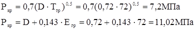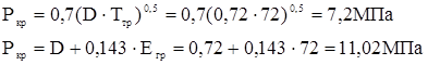 В качестве критической величины внешнего давления принимается меньшее из двух значений: