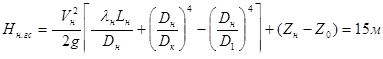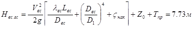 где , r0 -соответственно плотность воды ; Vвс - средняя скорость во всасывающем трубопроводе ; , при rгс = r0 kг =1 ; lвс - обобщенный коэффициент сопротивления, учитывающий трение и рассредоточенные по длине всасывающего трубопровода местные сопротивления ; Lвс , м –полная длина всасывающего трубопровода , принимаемая в зависимости от глубины разработки прорези Tпр , равная: Lвс