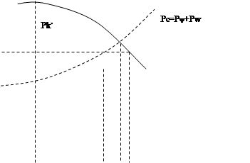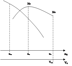 Ne – расчетное значение Va - скорость автомобиля nn - значение частоты вращения вала двигателя nv - частота вращения вала двигателя при максимальной скорости Mk – момент двигателя. Скоростная характеристика двигателя, совмещенная с характеристикой скорости движения автомобиля. Сила сопротивления воздуха Pw состоит из нескольких составляющих, основной из которых является сила лобового сопротивления. Последняя возникает вследствие того, что при движении автомобиля впереди него создается избыточное давление (подпор) воздуха, а сзади пониженное (в сравнении с атмосферным давлением). Чем больше разница впереди и сзади автомобиля, тем больше лобовое сопротивление. А разница давлений, в свою очередь, зависит от формы автомобиля и скорости его движения. Произведение k*F характеризуемое обтекаемость, называют фактором обтекаемости; k определяют экспериментально в аэродинамической трубе. В процессе эксперимента силу Pw и скорость движения воздуха в трубе Va. Из технической документации узнают площадь сечения F, а коэффициент k вычисляют по формуле Pw = kFva 2 Значение коэффициента сопротивления воздуха k (H*c2 /m4 ) для автомобилей разных типов: Автомобили гоночные - 0,13 – 0,15 легковые - 0,15 – 0,35 грузовые - 0,5 - 0,7 автобусы - 0,25 – 0,4 автопоезда- 0,55 - 0,95. При скорости до 40 км/ч сила Pw меньше сопротивление силы качения на асфальтированной дороге, вследствие чего ее не учитывают. Свыше 100 км/ч сила сопротивления воздуха представляет собой основную составляющую тягового баланса. Чтобы снизить ее на грузовиках устанавливают обтекатели и другие приспособления. Сила сопротивления качению Pf при движении автомобиля по твердым дорогам обусловлена главным образом гистерезисными потерями, доля которых достигает 90 – 95% общих потерь энергии на качении. К числу других факторов, формирующих силу сопротивления качению, относится проскальзывание шины относительно дороги и сопротивление воздуха. Колеса автомобиля работают в разных условиях по нагрузке, передаваемому моменту, геометрии и физическому состоянию дороги. Поэтому общую силу сопротивлению качению принято определять по формуле: Pf=fk Ga cosa fk – коэффициент сопротивления качению Ga – полный вес автомобиля a – угол уклона дороги. На дорогах с твердым покрытием наиболее существенным является характер неисправностей, определяющих деформацию шины и подвески, а, следовательно, и потери энергии. Значение коэффициента сопротивления качению при различных условиях движения машины. Сопротивление качению зависит от скорости движения автомобиля: до 50 км/ч оно приблизительно постоянное, а свыше 100 км/ч оно интенсивно растет. Это объясняется резким усилением колебания шины и увеличением затрат энергии на ударах. При очень больших скоростях впереди колеса деформируется воздушное уплотнение. В теории автомобиля принято несколько эмпирических зависимостей для определения коэффициента сопротивления качению. Одна из них имеет следующий вид. fa =f0 [1+(0,06va )2 ] f 0 – коэффициент сопротивления качению при скорости движения менее 50 км/ч. Сила Pi является составляющей силы тяжести машины. Она приложена в центре масс автомобиля и направлена параллельно поверхности дороги. Pi = Ga sin a Сила инерции Pj обусловлена неравномерностью поступательного движения автомобиля (Pj п ) и вращающихся деталей как двигателя, так и автомобиля. (Pjbp ). Pj = Pj п+ 