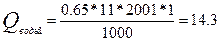дв – удельный расход на одного рабочего (65л=0,065м3 ). Rяв – явочное число рабочих (11). N – годовой фонд времени (2001). m – количество смен.