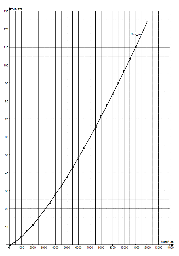 Графики зависимости затрат от наработки