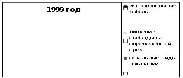 Заключение. В заключение мне хотелось бы отметить следующее. Проведенные криминологические исследования показывают, что назначение краткого срока лишения свободы приводит к росту рецидива, так как администрация исправительного учреждения не в силах использовать в полной мере все средства исправительного воздействия. Цели наказания не достигаются, утрачивается основной смысл применения нормы - оказать эффективное исправительно - предупредительное воздействие на осужденного. Отсутствие системы социальной реабилитации лиц с уголовным прошлым, практическая невозможность трудоустройства, отсутствие жилья - эти и другие подобные обстоятельства создают почву для роста рецидивной преступности. К уголовной ответственности за умышленные преступления вновь привлечено около 370 тыс. ранее судимых. Каждое третье раскрытое преступление совершено лицами, ранее вступавшими в конфликт с законом. Следует отметить, что в последнее время суды стали чаще применять лишение свободы как наиболее строгий вид наказания членам организованных преступных групп и сообществ. Но размер наказания зачастую не соответствует тяжести совершенных преступлений. При его назначении необходимо руководствоваться проверенным веками принципом: наказание должно быть достаточно строгим, способным удержать самого преступника от рецидива, а также других неустойчивых членов общества от нарушения уголовного закона. Итоги сравнительного анализа криминогенной ситуации и практики применения норм УК невольно наводят на мысль, что преступность в России развивается сама по себе; законодатель творит законы, пытаясь привести их в соответствие со сложившейся обстановкой, а судебная практика идет своим путем. Поэтому требуется постоянная координация законотворческой и правоприменительной деятельности с учетом существующих реалий, состояния преступности, ее общественной опасности. И одним из важнейших направлений является повышение эффективности использования санкций. Должно быть обеспечено жесткое репрессивное воздействие на лиц, виновных в совершении тяжких преступлений, и одновременно широкое применение более мягких видов наказания за совершение преступлений небольшой тяжести и, в частности, неосторожных. При характеристике служебной роли уголовно - правовой санкции как юридической гарантии достижения целей правового регулирования, предупреждения преступлений следует выделить прежде всего ее сдерживающую функцию. Угроза применения репрессивных мер удерживает потенциального правонарушителя от совершения преступления, порождает в его сознании борьбу мотивов. Естественно, чем более строгое наказание устанавливает уголовный закон за конкретное деяние, тем больший психологический барьер предстоит преодолеть лицу, вынашивающему замысел его совершить. Поэтому так важно при принятии соответствующей нормы тщательно сопоставить минимальный и максимальный пределы санкции с возможными уровнями опасности преступлений, ответственность за совершение которых устанавливается. Однако даже самая точная санкция может остаться декларацией при ее неправильном, не учитывающем сложившихся реалий применении. Приложение. Сноски: с. 2 – См.: Доклад Генерального Прокурора РФ Ю.И. Скуратова о состоянии преступности, борьбы за обеспечение законности и 