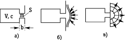 пространство Дается экспериментальное подтверждение второму предположению - увеличению интенсивности колебаний за счет уменьшения их продолжительности. Свободно подвешенный и возбужденный ударом камертон звучит 252 с, приложенный к мраморной доске - 115 с, приложенный к деревянной доске - 10 с. Особенно усиливаются колебания, если приложить камертон к ящику-резонатору с той же собственной частотой, что и у камертона. Однако продолжительность колебаний в этом случае еще более сокращается. Итак, звук усиливается, но запасенная энергия исчерпывается быстрее. Степень усиления колебаний определяется добротностью резонатора, а ощущение громкости - интенсивностью колебаний и их продолжительностью. Поэтому не следует преувеличивать эффективность действия "гармоник" древних театров на открытом воздухе или кувшинов-«голосников» древних православных храмов. Эти устройства создавали сравнительно небольшое усиление колебаний. Такие резонаторы иногда используют в современных акустических лабораториях. Можно предположить, что замкнутые пространства под эстрадой концертных залов и под оркестровой ямой оперных театров также являются своеобразными резонаторами, усиливающими звучность. Аналогичную роль играют подвесные «мембранные потолки» концертных и театральных залов, разумеется, если они не отягощены помещенным на них грузом-засыпкой из камней и шлака. В отличие от резонаторов-сосудов, представляющих собой системы с сосредоточенными параметрами, пространства под эстрадой или подвесные потолки являются системами с распределенными параметрами, "многочастотными системами". Связь собственной резонансной частоты объемных акустических резонаторов с их геометрическими размерами устанавливалась различными авторами, начиная с Гельмгольца. Внешнее несходство полученных выражений определяется различием некоторых исходных предпосылок, но рассчитанные значения f0 получаются примерно одинаковыми. Для резонаторов без горла (b=0) И.Г. Дрейзен приводит выражение а Е. Скучик – выражение причем a - радиус отверстия, V - объем. При а = 1 см и V = 500 см3 расчеты f0 по приведенным двум формулам дают соответственно значения 340 и 330 Гц. И. Г. Дрейзен и Е. Скучик получили выражения для добротности Q объемного резонатора. По Дрейзену, усилительная способность резонатора определяется отношением звукового давления в горле резонатора p2 к звуковому давлению р1 в падающей волне: причем k = 2p/l = 2pf/c0 - волновое число, V - объем резонатора. По Е. Скучику, Подставив в последнюю формулу данные предыдущего примера, получим Очевидно, что резонатор будет отвечать на возбуждение с частотами, лежащими в некоторой полосе частот, но наибольшая интенсивность колебаний установится при совпадении частоты источника колебаний с собственной частотой резонатора. Резонансные поглощающие конструкции. В зависимости от добротности акустические резонаторы действуют либо как усилители звуковых колебаний, либо как высокоэффективные поглотители. При резонансе скорость движения частиц воздуха в горле резонатора максимальна. Если поместить в горле элемент активного сопротивления r, то из-за большой скорости колебаний v потери мощности Ра = v2r будут велики. Потери возникают ввиду трения частиц воздуха о стенки горла. Потери возрастут, если отверстие перегородить такой тканью, как