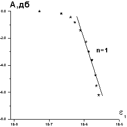 На рис.4 в логарифмическом масштабе приведена зависимость сдвига резонансной частоты D F от амплитуды деформации волны накачки e 1 , из которого следует, что D F µ e 1 . На рис.5 приведена зависимость амплитуды слабой волны A (в резонансе) от e 1 , из которого видно, что A µ e 1 . Аналогичные зависимости наблюдались и в случае возбуждения слабой волны на 1-й моде резонатора, а накачки - на 4-й. Аналитическое описание сдвига резонансной частоты проведено в рамках уравнения состояния, содержащего упругую нелинейность: , где E - модуль Юнга, f( e ) - малая нелинейная поправка (|f( e )|<<| e | ), a - коэффициент диссипации, r - плотность. С помощью методов, изложенных в работах [1,4], получена резонансная кривая стержня для слабой волны на 4-й моде резонатора при накачке на 1-й моде: , где A0 - амплитуда слабой волны, создаваемой излучателем, d = w n - w - расстройка частоты от резонанса, B0 =<f ў e >= g e 1 , где g - эффективный параметр упругой нелинейности песчаника. Из сравнения экспериментальной и аналитической зависимости получаем оценку для параметра упругой нелинейности песчаника: g »2Ч103 . Отметим, что полученное значение параметра упругой нелинейности существенно превышает характерные значения для однородных сред (g <10). Таким образом, уравнение состояния, содержащее упругую нелинейность, описывает только сдвиг резонансной частоты, и не описывает уменьшение добротности резонатора для слабой волны в поле мощной волны накачки. Для объяснения этого эффекта необходимо предположить, что песчаник обладает также и диссипативной акустической нелинейностью. Работа выполнена при поддержке РФФИ (гранд 96-15-96603). Использованная литература: 1) «Три взгляда на акустику помещений» А.П. Ефимов, журнал «Install Pro Magazine», 2000 г. 2) Назаров В.Е., Островский Л.А., Соустова И.А., Сутин А.М. «Акустический журнал», №3,1988 г. 3) « Физика металлов и металловедение» Назаров В.Е. 1992. |