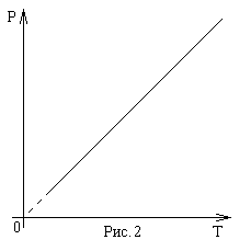 PV=const. Это означает, что при изменении одной из величин, другая также изменится, причем так, что их произведение останется постоянным. Зависимость объема от температуры (рис.2) была открыта Ж. Гей-Люссаком. Он обнаружил, что при постоянном давлении объем данного количества газа прямо пропорционален температуре: V~T , при Р=const.