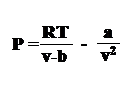 Из этого соотношения видно, что чем больше будет КПД двигателя, тем меньше будет теплота½QL ½. Однако опыт показал, что величину ½QL ½ невозможно уменьшить до нуля. Если бы это было осуществимо, то мы получили бы двигатель с КПД 100%. То, что такой идеальный двигатель, непрерывно совершающий рабочие циклы, невозможен, составляет содержание ещё одной формулировки второго начала термодинамики: Невозможен такой процесс, единственным результатом, которого было бы преобразование отобранной у источника теплоты Q, при неизменной температуре, полностью в работу W , так, что W=Q . Эта утверждение известно как формулировка второго начала термодинамики Кельвина-Планка. Существует также аналогичное утверждение относительно холодильника, высказанное Клаузисом: Невозможно осуществить периодический процесс, единственным результатом, которого был бы отбор теплоты у одной системы при данной температуре и передача в точности такого же количества теплоты другой системе при более высокой температуре. Уравнение Ван-дер-Ваальса. В реальных тепловых двигателях используются реальные газы. Как было замечено поведение их заметно отклоняется, например, при высоком давлении, от поведения идеального газа. Ян Д. Ван-дер-Ваальс (1837-1923) исследовал эту проблему с точки зрения МКТ и в 1873 году получил уравнение более точно описывающее поведение реальных газов. Свой анализ он основывал на МКТ, но при этом учитывал: A. Все молекулы имеют конечные размеры (классическая МКТ ими пренебрегает) B. Молекулы взаимодействуют друг с другом всё время, а не только во время столкновений. Предположим, что молекулы газа представляют собой шарики с радиусом r. Если считать, что такие молекулы ведут себя подобно твердым сферам, то две молекулы будут сталкиваться и разлетаться в разные стороны при расстоянии между центрами равным 2r. Таким образом, реальный объем, в котором могут двигаться молекулы несколько меньше, чем объем V сосуда содержащего газ. Величина этого "недоступного объема" зависит от объема молекул газа и от количества этих молекул. Пусть b представляет собой "недоступный объем" в расчете на один моль газа. Тогда в уравнении состояния идеального газа нужно заменить V на V-nb, где n - число молей газа, и мы получим: P(V-nb)=nRT Если разделить это выражение на n и считать, что величина v==V/n является объемом, который занят одним молем газа (v - удельный объем), то получим: