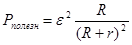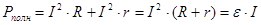 Соотношение (3) определяет полезную мощность, развиваемую источником на внешнем сопротивлении R . Аналогичное соотношение, но с сопротивлением r определяет мощность, выделяющуюся в виде тепла на внутреннее сопротивление источника. Полная мощность является суммой полезной мощности и мощности, выделяющейся на внутреннее сопротивление: