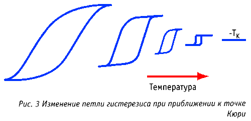 По мере роста температуры возрастает крутизна наклонных участков петли гистерезиса (соответственно, и |i). При этом уменьшается коэрцитивная сила и максимальная остаточная намагниченность, а отношение ВН /НК растет. Все это ведет к резкому росту эффективности записи. Естественно, эти особенности магнитных свойств ферромагнетиков вблизи точки Кюри заинтересовали изобретателей. Среди материалов, пригодных для записи на ленточный носитель, наименьшей температурой фазового перехода обладает диоксид хрома. Точка Кюри этого материала составляет 128 °С (у гамма-оксида железа, например, температура Кюри составляет 650 °С). Она достаточно велика, но тем не менее, в сочетании с точечным лазерным подогревом материала, гамма-оксид железа может применяться на практике. В качестве примера на рис. 4 приведена схема лазерного подогрева при термомагнитном тиражировании магнитных записей.