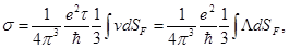 Здесь при переходе от первой строки ко второй принято во внимание, что òf0 k evk (r)dk º 0, использованы также формулы для преобразования объемного интеграла в k-пространстве в интеграл по изоэнергетическим поверхностям и по энергии. В металле функция (– ¶f0 /¶E) ведет себя как d-функция от (E – z), поэтому остается только проинтегрировать по поверхности Ферми. Таким образом,