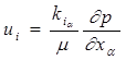(6) Постоянная К определяется из опыта и оказывается разной для пористых сред различной структуры. Формула (6) используется главным образом при расчетах фильтрационных сопротивлений искусственных пористых сред, применяемых в химических аппаратах; ею пользуются также при определении удельной поверхности порошков. Закон Дарси является следствием предположения о безинерционности движения жидкости. Фильтрационное течение, следующее закону Дарси, является частным случаем ползущего течения (широко известным примером ползущего течения является стоксовское обтекание сферы). Течения такого типа характеризуются преобладанием вязких сил над инерционными, т. е. очень малыми числами Рейнольдса (Re << 1). Поэтому представляются нецелесообразными многочисленные попытки получить закон Дарси путем осреднения уравнений Навье - Стокса. Ясно, что любой такой вывод будет сводиться в конечном счете к попытке вычислить проницаемость по известной геометрической структуре пористой среды. Закон Дарси имеет весьма широкую область приложения и на его основе получены основные результаты теории фильтрации. Существуют, однако, случаи, когда линейный закон фильтрации Дарси не применим. Эти случаи, необходимые обобщения закона Дарси и возникающие при этом нелинейные задачи теории фильтрации будут рассмотрены ниже. Пока же будем считать все рассматриваемые движения подчиняющимися закону Дарси. До сих пор предполагалось, что пористая среда изотропна. Если пористая среда не является изотропной, то из общих соображений можно утверждать, что в произвольной ортогональной декартовой системе координат х1