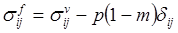 Важная особенность пористой среды, отмеченная выше, заключается в том, что изменения занятого ею объема могут происходить при весьма малых изменениях собственного объема твердого скелета, почти исключительно за счет его перестройки. Простейшей моделью подобной системы может служить пружина, погруженная в воду. Объем цилиндрического тела, ограниченного пружиной, практически не изменяется при изменении давления жидкости и может сильно измениться, если приложить по концам противоположно направленные силы. В формулу для вычисления осадки пружины следует подставлять величину истинных напряжений за вычетом слагаемого, обусловленного давлением жидкости. Аналогичные соображения применимы и в более общих случаях. Таким образом, опыт, поставленный в условиях произвольного нагружения, даст нам зависимость пористости не от тензора истинных напряжений, действующих в скелете пористой среды, а от тензора фиктивных напряжений. Ввиду того что при действии на пористую среду одного гидростатического касательные напряжения в пористой среде не возникают, касательные компоненты тензора истинных напряжений и тензора фиктивных напряжений и тензора совпадают, а нормальные компоненты отличаются на величину р(1-m), имеем